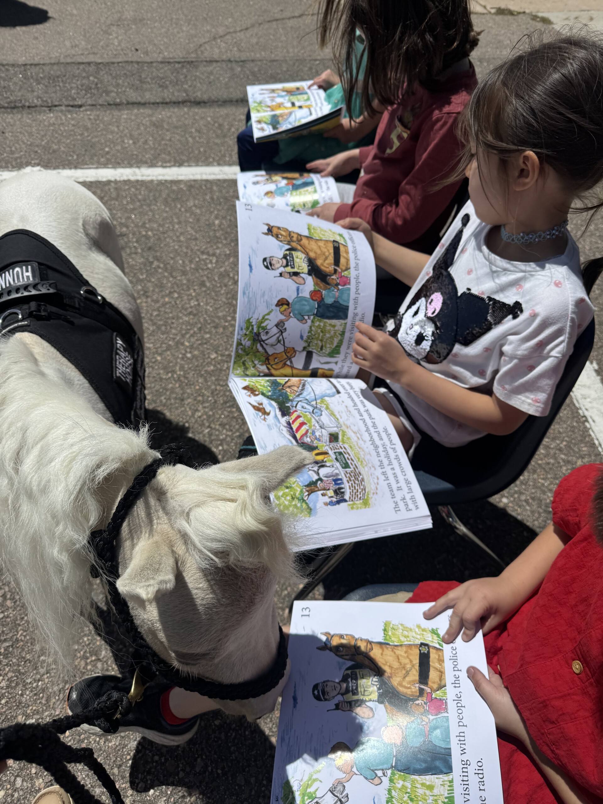 Never missing a beat, McNicholas and her two other miniatures have continued on with the visits, amid hundreds of personal messages of condolence from the communities they’ve touched. A week later, she and Hunny B were back on the job reading a book about Love Bug to students in Arapahoe County. “It’s hard for me, but it’s important that I show up and I continue, if anything, to honor Love Bug and her commitment.”