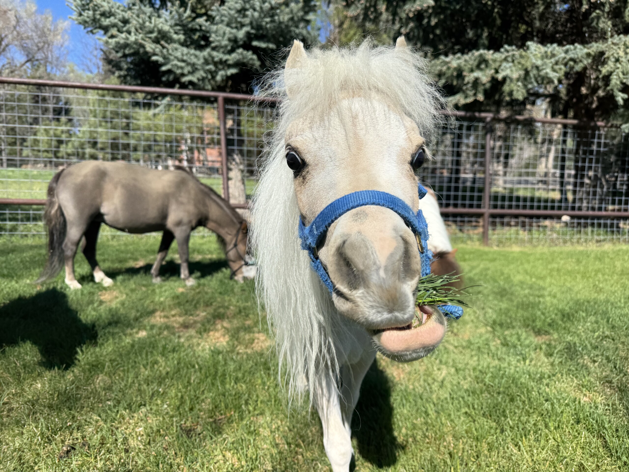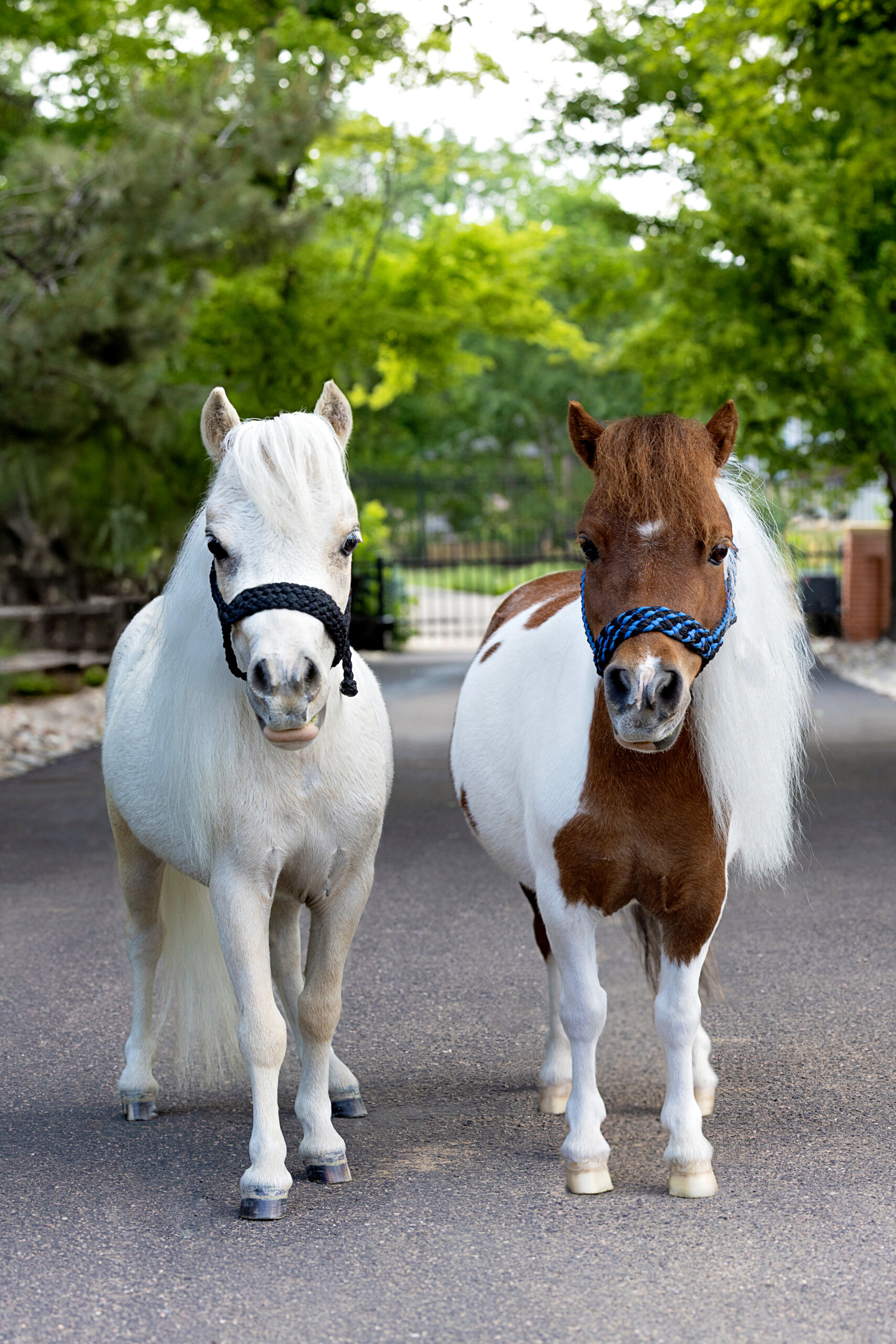 McNicholas’ first equine therapy partner was a little filly named Love Bug. She credits time spent volunteering at nursing homes and her teaching background, along with all of her 4-H and horse experience, with giving her the knowledge needed to successfully train Love Bug, along with two other therapy horses since. In addition to being “potty trained,” the horses are taught to navigate slippery hard floors, soft floors, elevators, steps and general chaos. “Having three wild children is great for minis because they used to pull them behind their little Barbie car and their scooters. It’s funny because people are always asking, ‘How did you get them so calm?’ I’m like, ‘Oh, my house is chaos, that’s why,’” says McNicholas. Three-year-old Hunny B proved herself a pro recently, dealing with a roaring crowd as she was named “Junior Thunder” at a Broncos game.