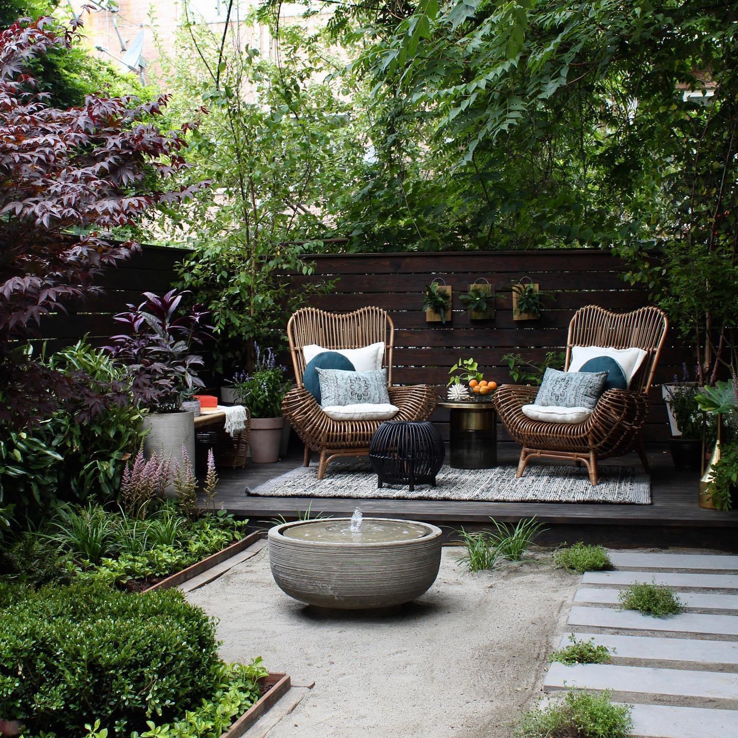 Spruce up you outdoor environment with more exotic plants, water features and pops of bright garden colors