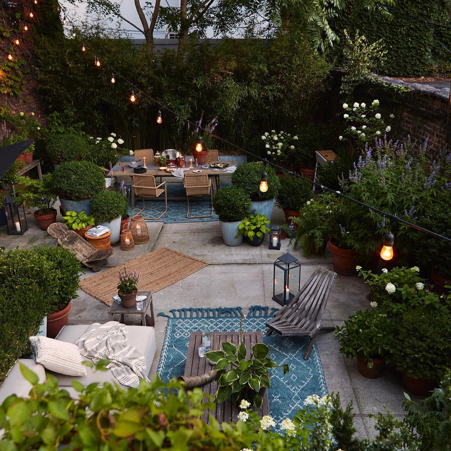 Get creative and try hanging baskets that work as privacy aides as well as additional greenery in a window or on a terrace. “Hanging plants are making a huge comeback, whether indoors or outdoors. A classic is a spider plant, with its dozens of runners or spiderettes nestled in a macramé hanger; it recalls the midcentury style in all its glory,” laughs Huston.