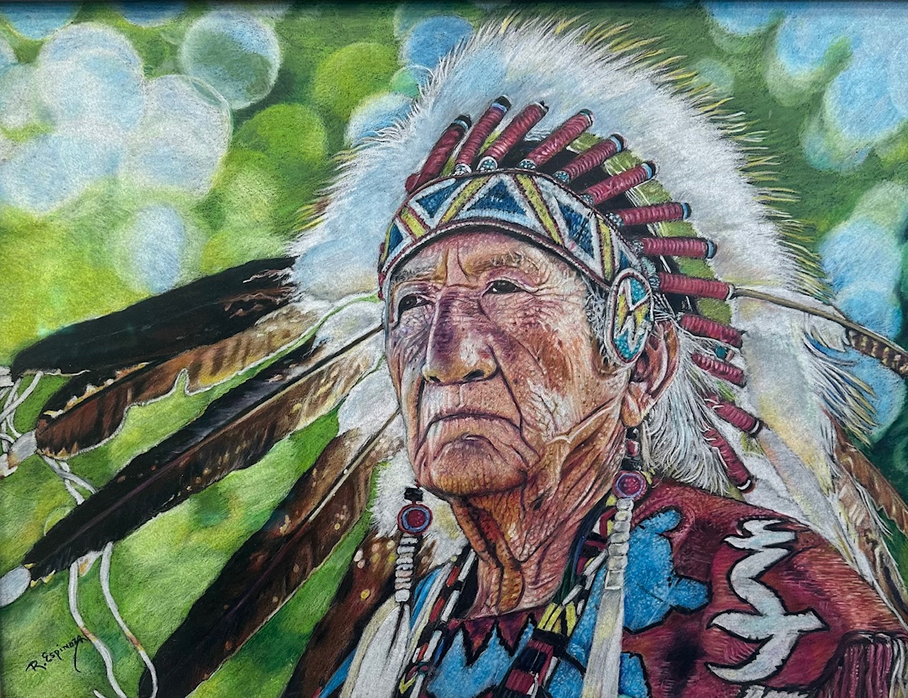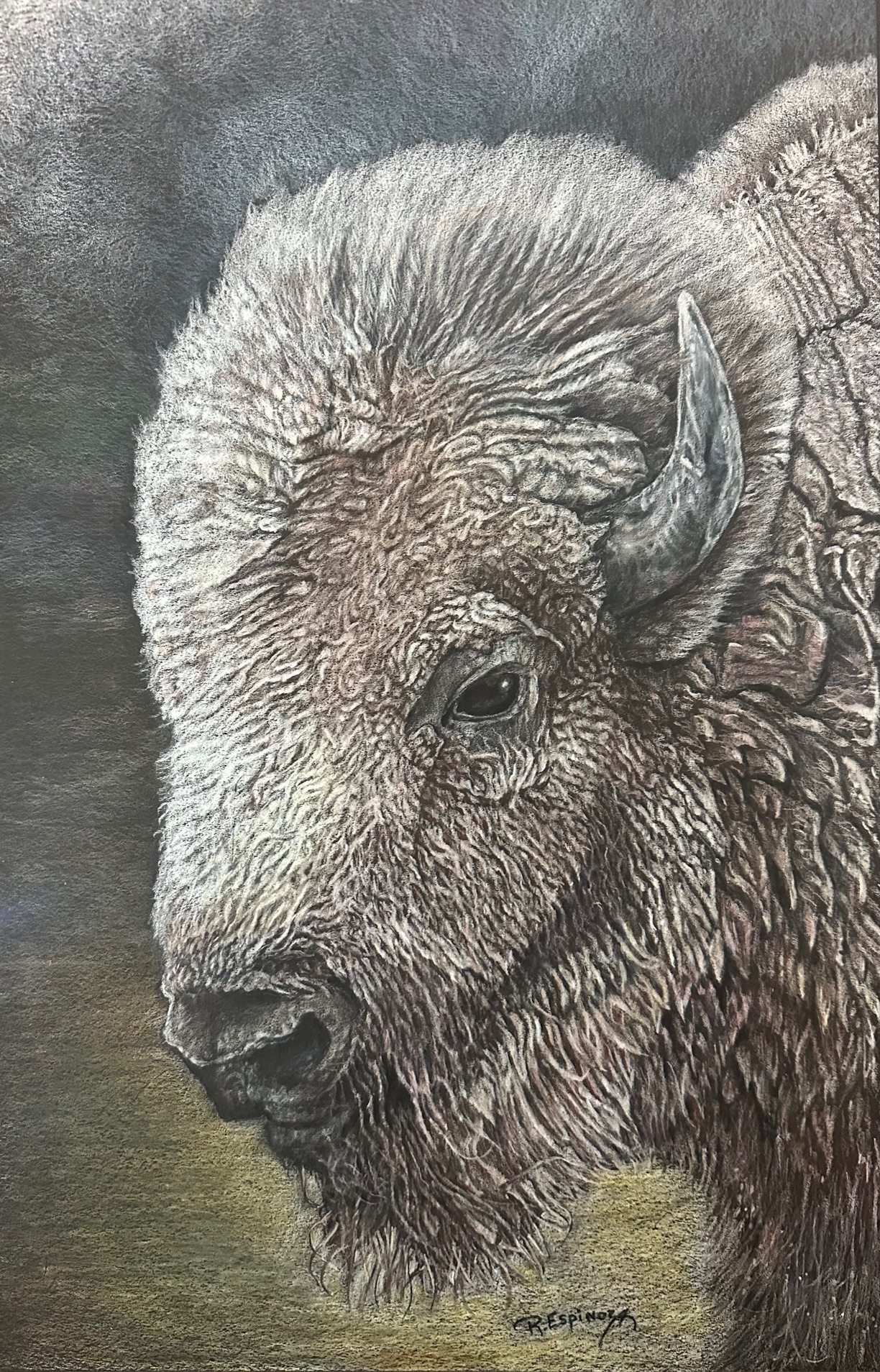 Born and raised in Pueblo, Rick Espinoza is a self-taught Chicano artist who creates stunning colored pencil works that celebrate the soul and strength of Indigenous cultures. Influenced early on by his older brother’s artistic talent and the natural environment along the Arkansas River, Espinoza began sketching animals and reptiles he encountered as a child—an experience that sparked a lifelong love for art.